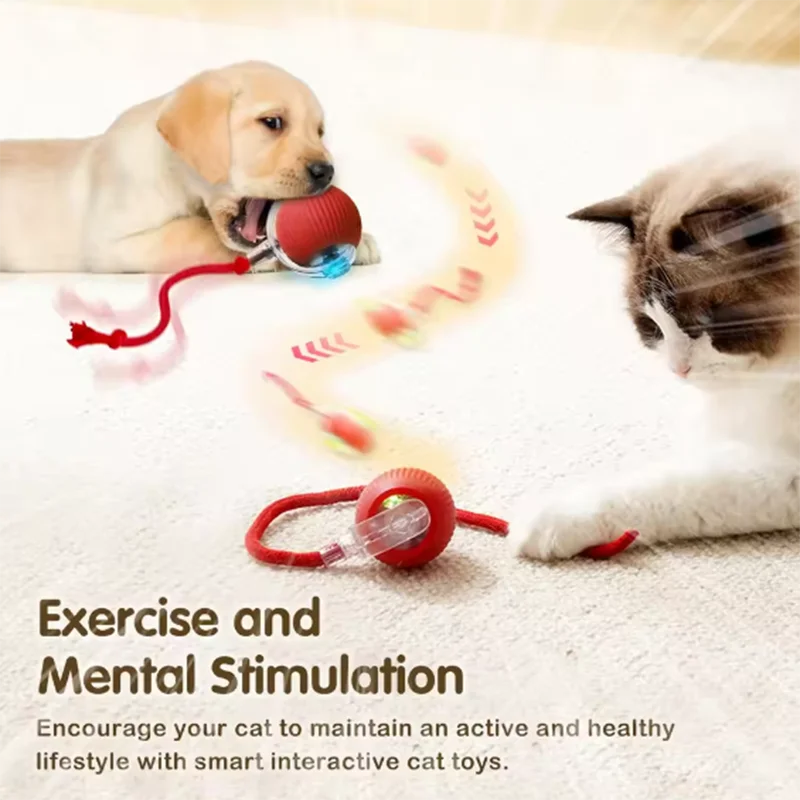 DescriptionInteractive Cat Toys Bouncy Ball with Tail USB Rechargeable Intelligent Cat Accessories Electric Automatic Smart Mouse for CatFeatures:【Endless Interactive Fun】Keep your pet engaged and active with the interactive dog ball! This ball rolls at the press of a button, sparking your dog or cat’s natural instincts to chase and play,...